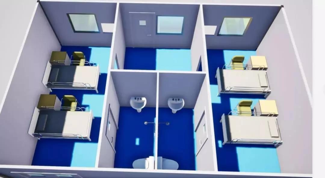 ▲ 雷神山醫(yī)院隔離病區(qū)病房樣板模型一