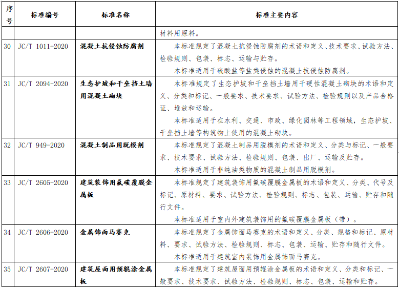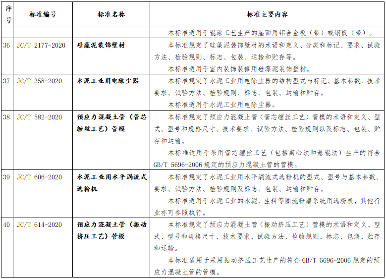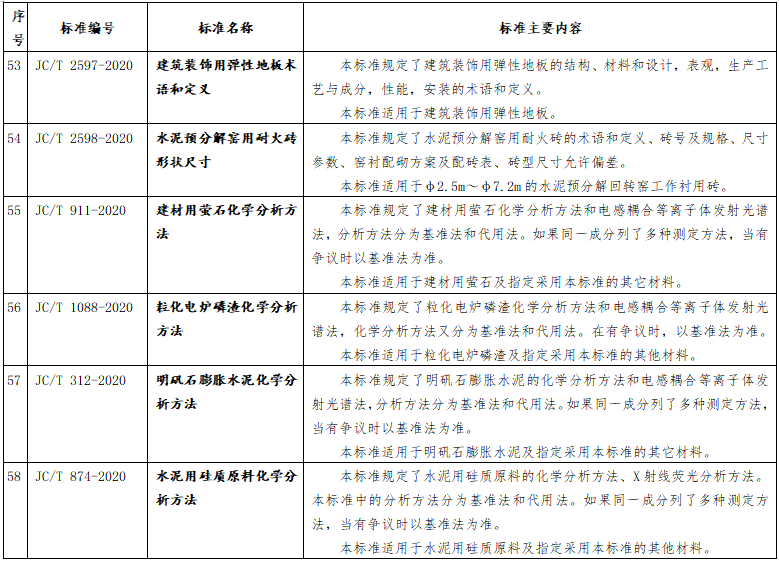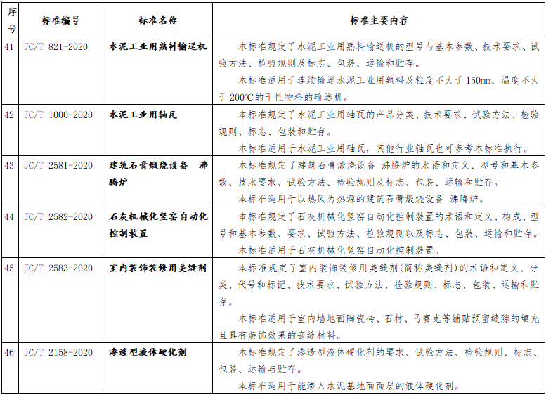 10月27日,工信部發(fā)布《200項行業(yè)標準及78項行業(yè)標準樣品報批公示》,其中包括66項建材行業(yè)標準,公示截止日期2020年11月26日。