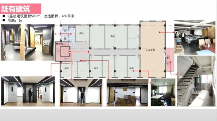 學校二層原始格局都是小隔間辦公室,只有一個大教室可以上課,比例窄長、新風和采光不足,上課感受欠佳。