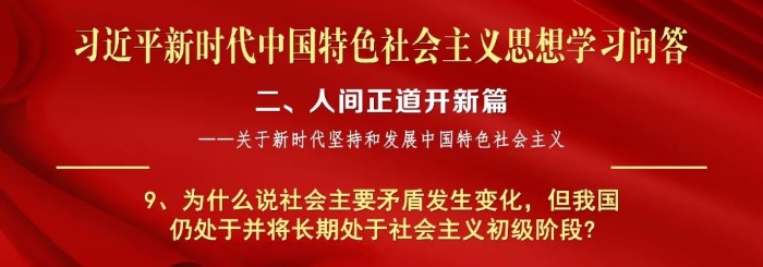 建設(shè)社會主義是一次偉大的長征,走過社會主義初級階段至少需要上百年時間。在這個進程中,社會主要矛盾不是一成不變的。長期以來,人民日益增長的物質(zhì)文化需要同落后的社會生產(chǎn)之間的矛盾是我國社會主要矛盾。隨著中國特色社會主義進入新時代,我國社會主要矛盾已經(jīng)轉(zhuǎn)化為人民日益增長的美好生活需要和不平衡不充分的發(fā)展之間的矛盾。