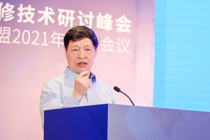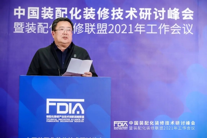 ▲裝配化裝修聯(lián)盟常務(wù)副理事長(zhǎng)、中國(guó)建設(shè)科技集團(tuán)股份有限公司總裁孫英作主題發(fā)言