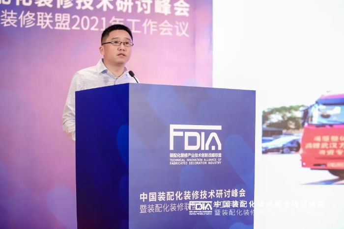 ▲裝配化裝修聯(lián)盟常務(wù)副秘書(shū)長(zhǎng)魏曦進(jìn)行工作匯報(bào)