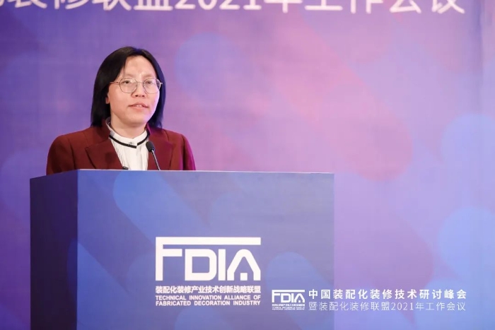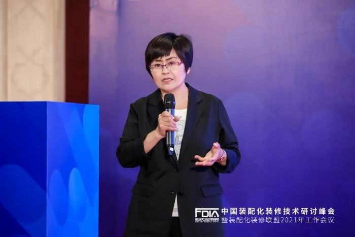 裝配化裝修聯(lián)盟常務(wù)副理事長(zhǎng)、中國(guó)建設(shè)科技集團(tuán)股份有限公司總裁孫英以“攜手共進(jìn) 推動(dòng)裝配化裝修全面發(fā)展”為題作主題發(fā)言,基于全行業(yè)推動(dòng)綠色低碳、高質(zhì)量發(fā)展的大背景,結(jié)合中國(guó)建設(shè)科技集團(tuán)在裝配化裝修方面的探索,闡述了裝配化裝修的意義及概念、發(fā)展現(xiàn)狀、行業(yè)突出問(wèn)題及癥結(jié),并就關(guān)于推動(dòng)裝配式裝修的思考進(jìn)行分享。她提出,推動(dòng)裝配化裝修發(fā)展勢(shì)在必行,要以問(wèn)題為導(dǎo)向,進(jìn)一步全面提升行業(yè)對(duì)裝配化裝修的認(rèn)識(shí),全面提升裝配化裝修的設(shè)計(jì)能力和水平,進(jìn)一步加強(qiáng)部品體系的研發(fā),建立通用化的技術(shù)體系,大力推動(dòng)EPC工程總承包的模式,改進(jìn)施工組織方式,從而全面釋放裝配化裝修的核心價(jià)值和優(yōu)勢(shì),提升建筑品質(zhì),滿足人民日益增長(zhǎng)的對(duì)美好生活的需要。