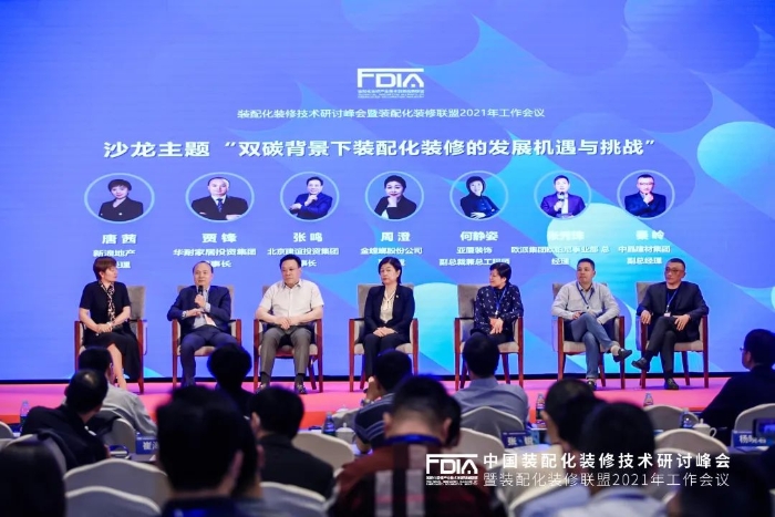 科技賦能裝配式發(fā)展,綠色助力打造美好人居。會(huì)議邀請(qǐng)了企業(yè)代表華耐家居投資集團(tuán)有限公司董事長(zhǎng)賈鋒,北京建誼建筑工程有限公司董事長(zhǎng)張鳴,金螳螂股份公司副總裁、定制精裝董事長(zhǎng)周澄,浙江亞廈裝飾股份有限公司副總裁兼總工程師何靜姿,歐派集團(tuán)歐鉑尼事業(yè)部總經(jīng)理張秀珠,中晶建材集團(tuán)副總經(jīng)理/中晶建材銷售公司董事長(zhǎng)秦嶺等嘉賓針對(duì)“雙碳背景下裝配化裝修的發(fā)展機(jī)遇與挑戰(zhàn)”進(jìn)行了沙龍交流,沙龍由新浪地產(chǎn)總經(jīng)理、優(yōu)采平臺(tái)副主任唐茜主持。