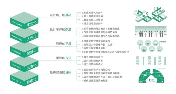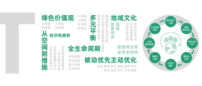基于多年設(shè)計(jì)實(shí)踐的經(jīng)驗(yàn)總結(jié),深圳華森建筑與工程設(shè)計(jì)顧問(wèn)有限公司推出正向設(shè)計(jì)工具——華森綠色設(shè)計(jì)標(biāo)準(zhǔn)100條。該標(biāo)準(zhǔn)鼓勵(lì)由建筑師主導(dǎo)的正向設(shè)計(jì),奉行樸素的"泛綠色"理念,以舒適、健康、節(jié)能、環(huán)保和生態(tài)的設(shè)計(jì)為綠色目標(biāo)。標(biāo)準(zhǔn)以100個(gè)標(biāo)識(shí)呈現(xiàn),對(duì)應(yīng)100個(gè)設(shè)計(jì)要點(diǎn),通過(guò)摘取適宜的綠色標(biāo)識(shí),完成對(duì)項(xiàng)目的綠色策略選擇。公司綜合考量最終落地的綠標(biāo)個(gè)數(shù)和綠值系數(shù),作為評(píng)價(jià)綠色設(shè)計(jì)的基本方法,并以此推動(dòng)規(guī)劃、建筑設(shè)計(jì)和景觀環(huán)境一體化的綠色設(shè)計(jì),看顧從策劃、設(shè)計(jì)到建設(shè)、運(yùn)維直至拆除的全生命周期綠色建筑。