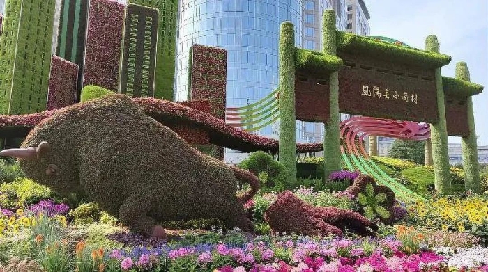 花壇以小崗村牌樓、深圳城市剪影為主景,展現(xiàn)了在中國共產(chǎn)黨領(lǐng)導(dǎo)下,中國人民實(shí)現(xiàn)從站起來到富起來的偉大飛躍,繼續(xù)發(fā)揚(yáng)孺子牛、拓荒牛、老黃牛精神。