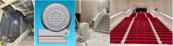 ▲漢白玉大臺(tái)階設(shè)計(jì)制作過(guò)程。漢白玉大臺(tái)階是傳統(tǒng)建筑的主要組成部分和建筑工藝的精華之一,有吉祥、祈福之象征。