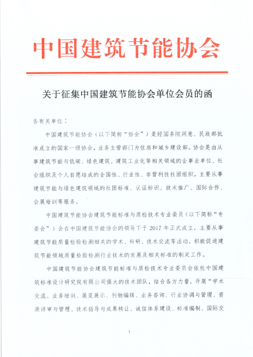 關(guān)于征集中國建筑節(jié)能協(xié)會單位會員的函
