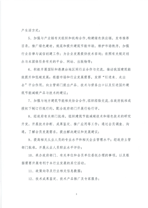 4、經(jīng)政府有關(guān)部門批準(zhǔn),組織編制并發(fā)布團(tuán)體標(biāo)準(zhǔn),宣傳推廣黨和政府主管部門建筑節(jié)能減碳政策和導(dǎo)向,引導(dǎo)行業(yè)、社會綠色低碳的生產(chǎn)生活方式;