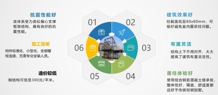 裝配式鋼結(jié)構(gòu)農(nóng)房具有抗震性能好、建筑效果好、布置靈活、居住體驗好、造價較好、施工簡單的優(yōu)點。