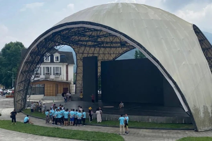 白鹿音樂小鎮(zhèn)位于彭州市白鹿鎮(zhèn),地處成都西北,是國家4A級旅游景區(qū),也是成都市十大古鎮(zhèn)之一。小鎮(zhèn)距離汶川很近,5.12地震災(zāi)后重建第一階段,依托中法文化交流的歷史,得到資金支持,打造體現(xiàn)中法文化交融元素的“中法風(fēng)情小鎮(zhèn)”。地震中屹立不倒的中心學(xué)校教學(xué)樓原址,成為安全教育實訓(xùn)基地。