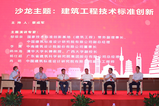 沙龍由國(guó)家技術(shù)標(biāo)準(zhǔn)創(chuàng)新基地(建筑工程)副秘書(shū)長(zhǎng)、中國(guó)工程建設(shè)標(biāo)準(zhǔn)化協(xié)會(huì)副秘書(shū)長(zhǎng)蔡成軍主持,邀請(qǐng)了國(guó)家技術(shù)標(biāo)準(zhǔn)創(chuàng)新基地(建筑工程)常務(wù)副理事長(zhǎng)、中國(guó)建筑標(biāo)準(zhǔn)設(shè)計(jì)研究院有限公司副總經(jīng)理郁銀泉,中南建筑設(shè)計(jì)院股份有限公司董事長(zhǎng)李霆,清華大學(xué)長(zhǎng)聘教授、廣西大學(xué)副校長(zhǎng)韓林海,廣東省建筑科學(xué)研究院集團(tuán)股份有限公司總經(jīng)理楊仕超,中國(guó)建筑標(biāo)準(zhǔn)設(shè)計(jì)研究院有限公司副總工程師肖明五位行業(yè)知名專家圍繞建筑工程技術(shù)標(biāo)準(zhǔn)創(chuàng)新進(jìn)行分享交流。