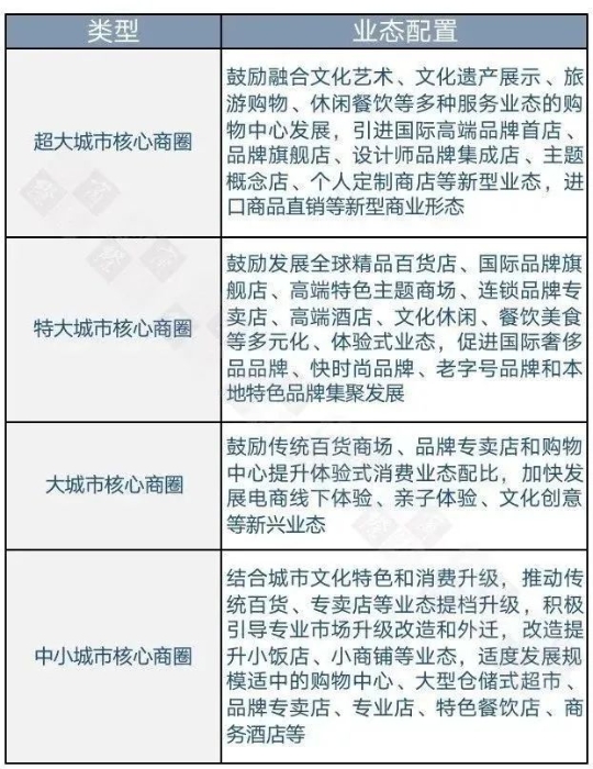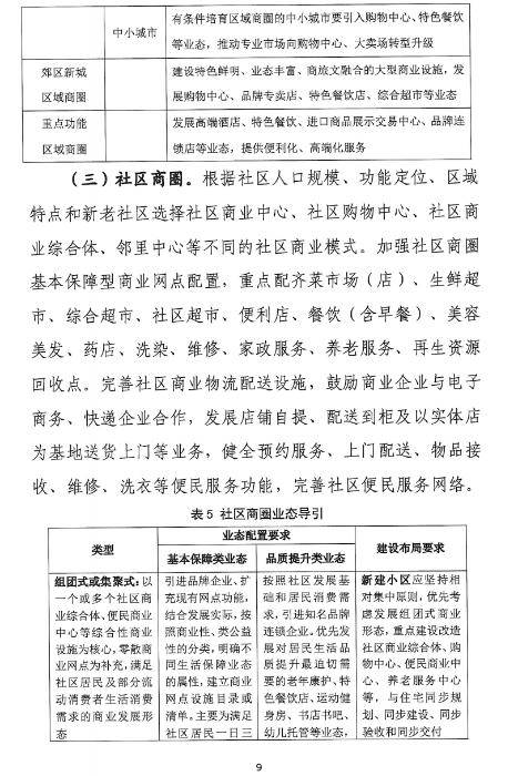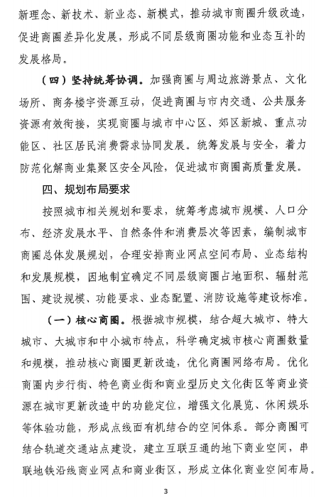 基于城市現(xiàn)狀和發(fā)展需求,引入新理念、新技術、新業(yè)態(tài)、新模式,推動城市商圈升級改造,促進商圈差異化發(fā)展,形成不同層級商圈功能和業(yè)態(tài)互補的發(fā)展格局。
