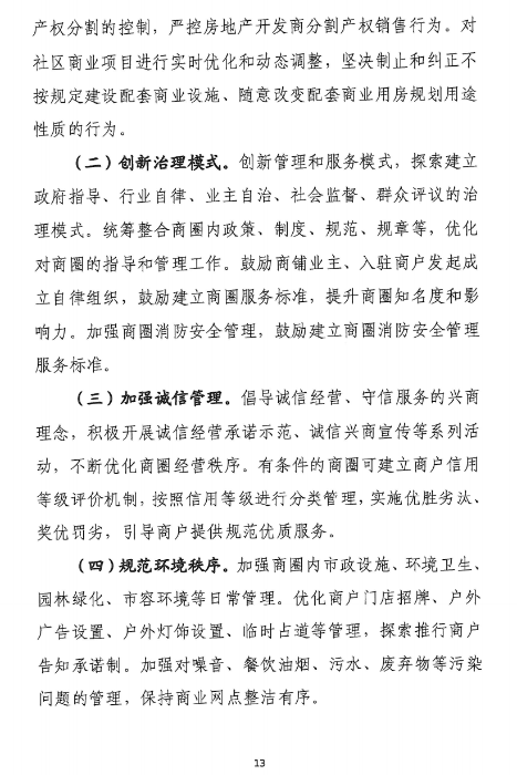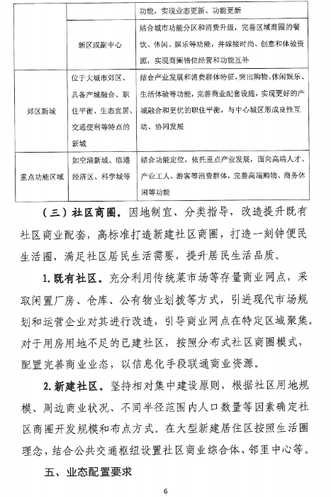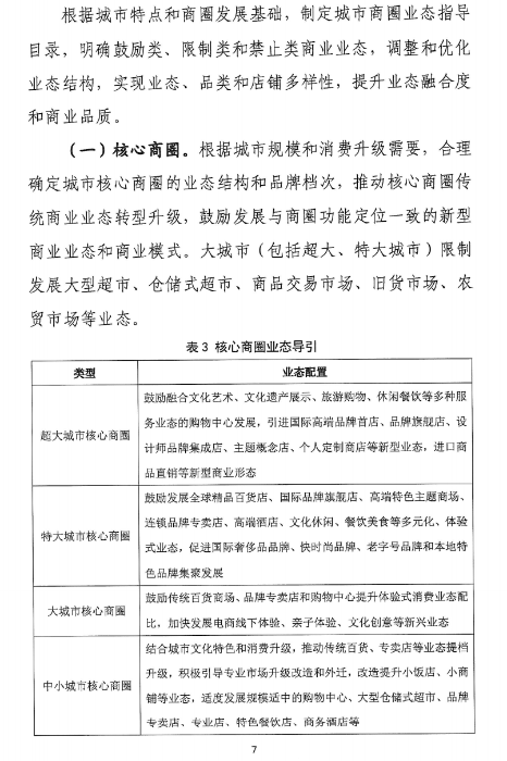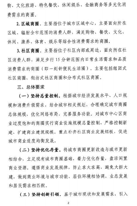對城市中心區(qū)商業(yè)過度飽和的商圈實行商業(yè)設施規(guī)??偭靠刂?,嚴格控制新建、擴建商業(yè)建筑規(guī)模。重點補齊社區(qū)商業(yè)發(fā)展短板,促進城市商業(yè)適度均衡發(fā)展。