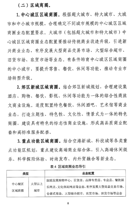 《指南》提出,根據(jù)城市經濟發(fā)展水平、人口規(guī)模和消費升級需求,結合城市相關規(guī)劃,合理確定城市商圈總體規(guī)模,優(yōu)化網(wǎng)絡布局,完善服務功能。