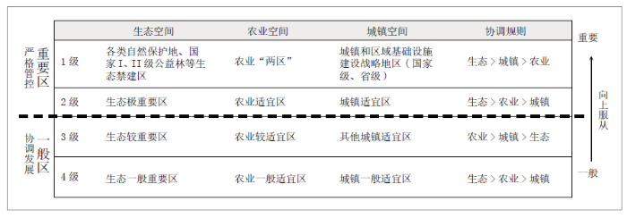功能地域傳導與落實是通過劃定具有相同功能,具備強制性、永久性、優(yōu)先性保護和發(fā)展的管理需求的實體空間控制線,包括生態(tài)保護紅線、永久基本農(nóng)田、城鎮(zhèn)開發(fā)邊界3 條控制線,部分文化資源富集地區(qū)還有歷史文化保護控制線等其他控制線。以上控制線應(yīng)根據(jù)所處經(jīng)濟區(qū)位優(yōu)勢和空間本底潛力進行差異化劃定。
