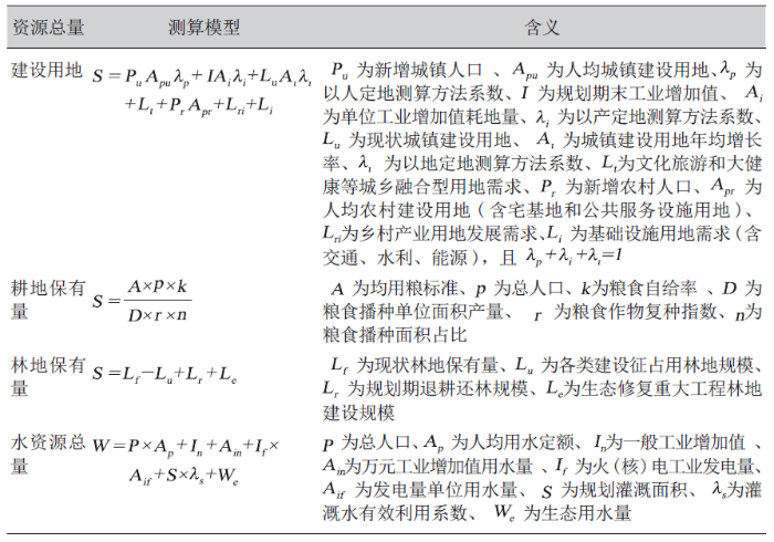 表 3 各類資源總量測算模型