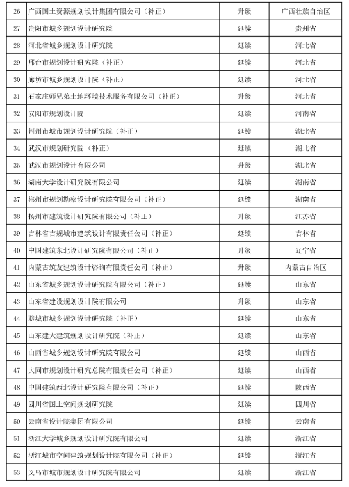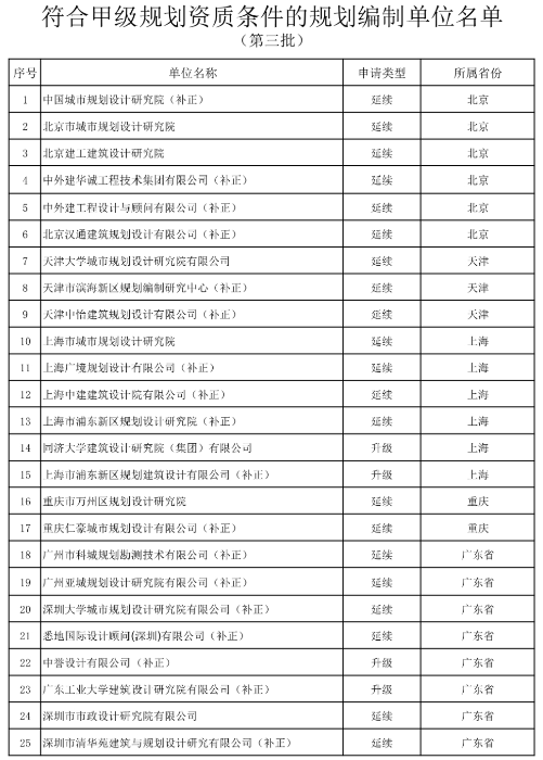 關(guān)于符合甲級(jí)規(guī)劃資質(zhì)條件的規(guī)劃編制單位名單