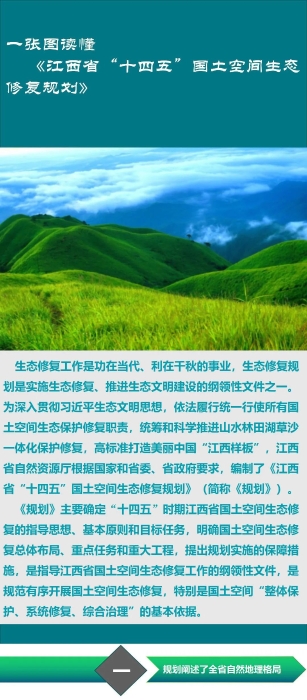 日前,江西省自然資源廳、省發(fā)展改革委聯(lián)合印發(fā)了《江西省“十四五”國(guó)土空間生態(tài)修復(fù)規(guī)劃》(以下簡(jiǎn)稱《規(guī)劃》),這是全國(guó)正式發(fā)布的第一個(gè)省級(jí)國(guó)土空間生態(tài)修復(fù)規(guī)劃。