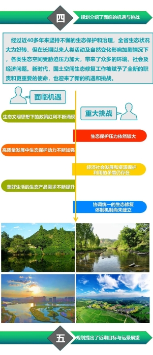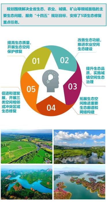 《規(guī)劃》具體包含5章16小節(jié),期限為2021-2025年,展望至2035年?!兑?guī)劃》明確了“十四五”期間,全省生態(tài)修復(fù)主要目標(biāo)是提升全省生態(tài)、農(nóng)業(yè)、城鎮(zhèn)生態(tài)系統(tǒng)質(zhì)量,推進(jìn)形成生態(tài)保護(hù)和修復(fù)新格局。