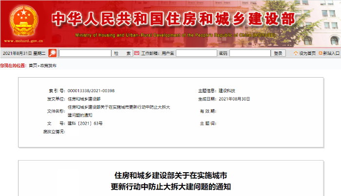 今日,住建部發(fā)布《住房和城鄉(xiāng)建設(shè)部關(guān)于在實(shí)施城市更新行動(dòng)中防止大拆大建問題的通知》。其征求意見稿于8月10日在住建部官網(wǎng)發(fā)布。