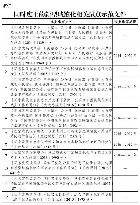 同時(shí)廢止的新型城鎮(zhèn)化相關(guān)試點(diǎn)示范文件