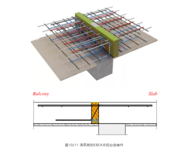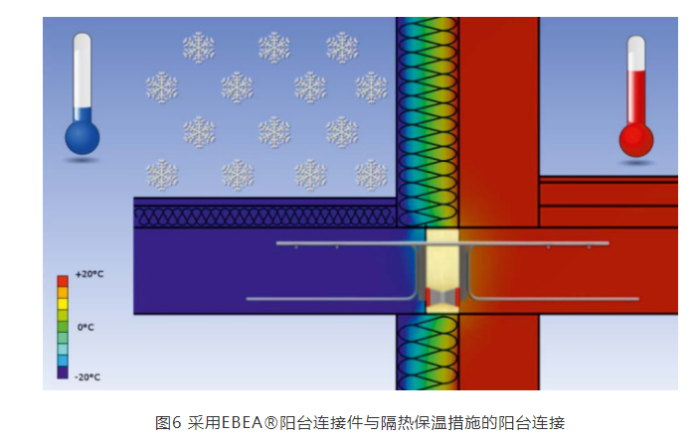 EBEA?陽臺連接件是與樓板和陽臺板一起澆鑄,或者可以與預(yù)制陽臺板一同預(yù)制并連接到現(xiàn)澆板或預(yù)制疊合板上。下面的插圖顯示了EBEA?陽臺連接件可以改善和減少熱量傳遞。