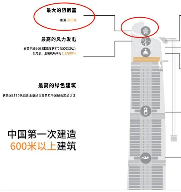真正的阻尼器位于126層大樓頂部,距離地面584米,重達1000噸,全稱為“電渦流擺設(shè)式調(diào)諧質(zhì)量阻尼器”,它采用的電渦流技術(shù)以往用于磁懸浮等工程,這項技術(shù)系世界上首次用于風阻尼器,是中國人首創(chuàng)。