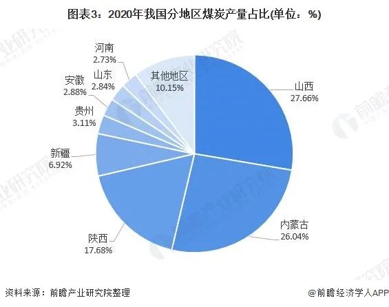 華北地區(qū)歷來是我國(guó)主要煤炭生產(chǎn)地區(qū),2020年全年我國(guó)煤炭產(chǎn)量累計(jì)為38.44億噸,其中山西和內(nèi)蒙古為煤炭產(chǎn)量最多的兩個(gè)省份,分別占全國(guó)的27.66%和26.04%,合計(jì)占比超過50%。