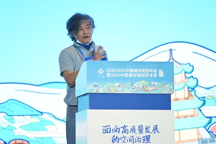 丁志剛在主題發(fā)言中指出,新發(fā)展階段空間需求將迎來經(jīng)濟發(fā)展、綠色低碳、社會需求、技術(shù)革命、城市治理五個層面的深刻變化,需要用改革的辦法推進空間供給結(jié)構(gòu)調(diào)整。國家層面要突出空間供給的戰(zhàn)略導(dǎo)向和分類差別引導(dǎo)的規(guī)則制定,區(qū)域?qū)用嬉苿又黧w功能區(qū)的空間落實,致力推進要素流動下的城市群戰(zhàn)略,城鄉(xiāng)層面要更加突出新型城鎮(zhèn)化和鄉(xiāng)村振興戰(zhàn)略的雙輪驅(qū)動,城市空間結(jié)構(gòu)要著力推動構(gòu)建兼顧發(fā)展和安全韌性的分布式城市組團結(jié)構(gòu),城市內(nèi)部空間要致力推動空間再生產(chǎn)下的城市有機更新。相應(yīng)地,城市規(guī)劃行業(yè)也面臨鳳凰涅槃的洗禮,作為規(guī)劃設(shè)計從業(yè)者,要始終堅定初心使命,不能忘記自己的立足之本、以及為百姓塑造更加美好空間品質(zhì)的專業(yè)情懷,要認清自身專業(yè)特點和系統(tǒng)化思維的優(yōu)勢,要更加突出以人民為中心的思想,要與祖國共同成長,以空間治理水平的提升促進高質(zhì)量發(fā)展、助推實現(xiàn)國家治理體系和治理能力現(xiàn)代化。