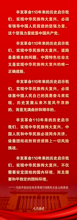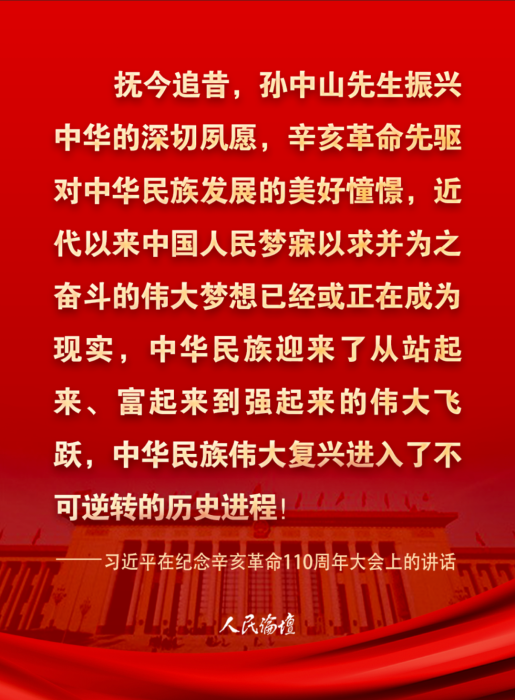 紀(jì)念辛亥革命110周年大會9日上午在北京人民大會堂隆重舉行。習(xí)近平出席大會并發(fā)表重要講話。一起讀金句,看要點↓↓