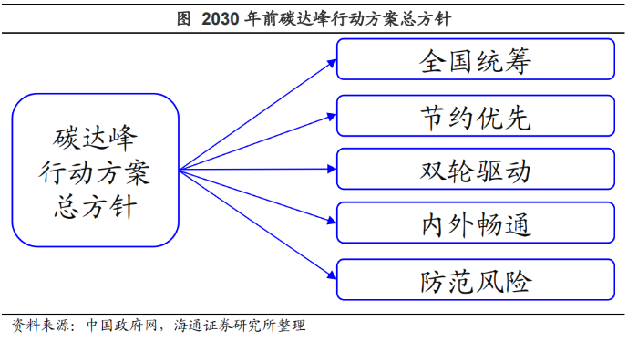 在《意見》發(fā)布后,國務院緊接著在10月26日印發(fā)《2030年前碳達峰行動方案》。這兩個文件共同構成了貫穿我國碳達峰、碳中和的頂層設計。