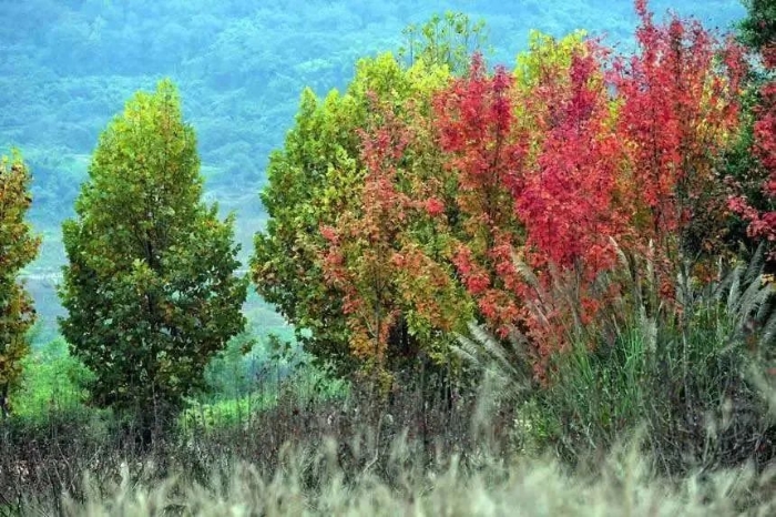 廣陽島上五顏六色的樹木,組成一幅色彩斑斕的畫卷。郭旭 攝