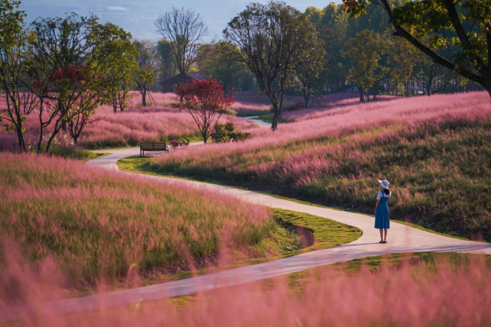 五彩斑斕的景色,吸引了游人前來觀賞。崔景印 攝