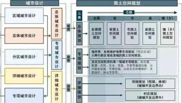 規(guī)劃編制上的整體性是指我們在組織規(guī)劃編制的過程中系統(tǒng)性地進行構(gòu)架,同時將城市規(guī)劃和城市設(shè)計有效地結(jié)合在一起。目前我國構(gòu)建起了五級三類的國土空間規(guī)劃體系,包括總體規(guī)劃、專項規(guī)劃和詳細規(guī)劃三類。與之相適應(yīng)的城市設(shè)計體系包括總體城市設(shè)計、專項城市設(shè)計、詳細城市設(shè)計,分別運用至三類規(guī)劃當中。城市規(guī)劃和城市設(shè)計得到了有效的對應(yīng)和結(jié)合,這是規(guī)劃編制整體性最主要和最基本的內(nèi)容。