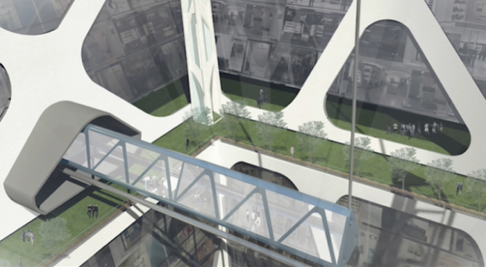 倒金字塔大廈有10層作住宅使用,35層作辦公用,此外還有10層商店和10層博物館?!暗菇鹱炙鳖A建于墨西哥城的主廣場,地面為一個正方形,上面將建造5.76萬平方米的玻璃“屋頂”,正中間將插上墨西哥國旗。光線可以由此射入地下。