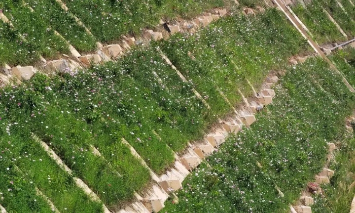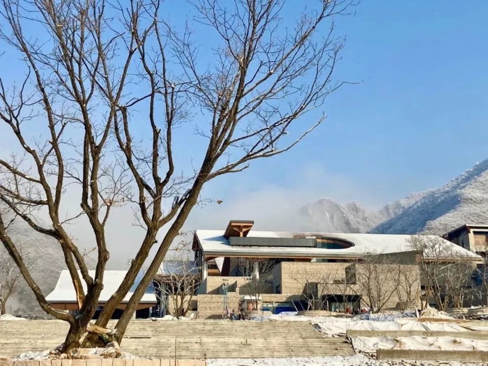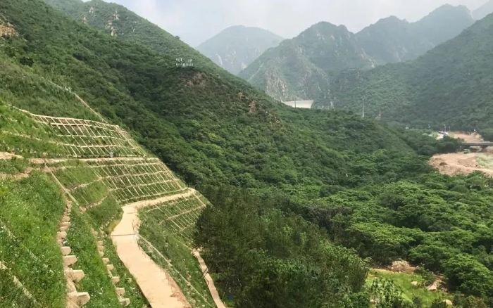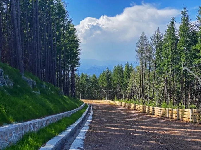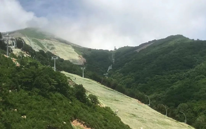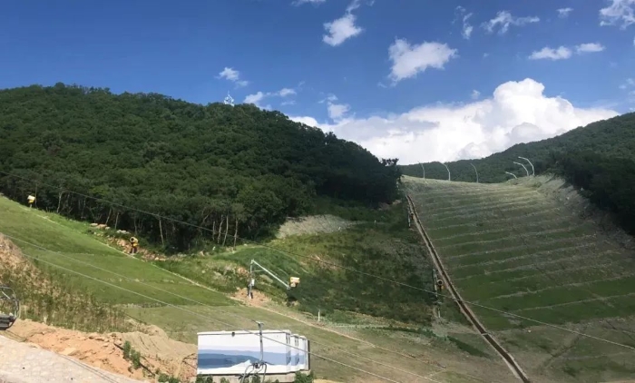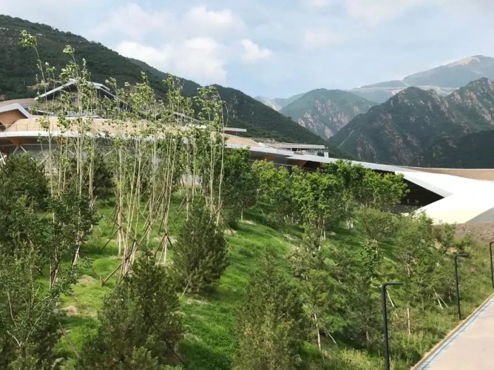 七條覆滿綠色的雪道從山頂傾瀉而下,已經(jīng)與周邊林草融為一體,海拔2198米的國家高山滑雪中心出發(fā)平臺周邊、高山草甸,花草樹木依舊茂盛;國家雪車雪橇中心這條巨龍靜臥在郁郁蔥蔥的海陀山腳,延慶冬奧村與山地新聞中心背靠青山,中式庭院靜謐地掩映在山林之間,點點野花點綴在綠茵如毯的山坡上,佇立于此,仿佛置身于畫卷之中……