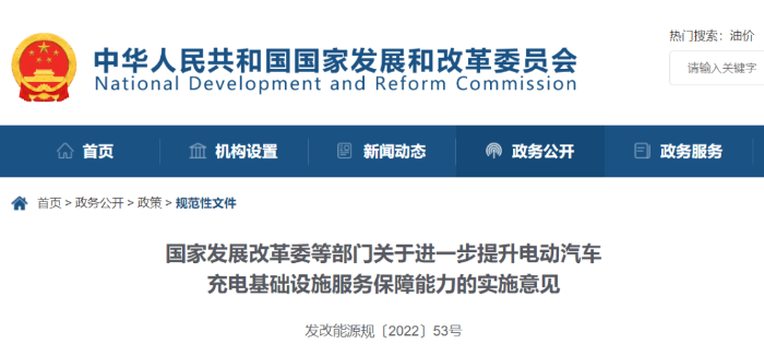 為全面貫徹落實(shí)《國務(wù)院辦公廳關(guān)于印發(fā)新能源汽車產(chǎn)業(yè)發(fā)展規(guī)劃(2021–2035年)的通知》,支撐新能源汽車產(chǎn)業(yè)發(fā)展,突破充電基礎(chǔ)設(shè)施發(fā)展瓶頸,推動(dòng)構(gòu)建新型電力系統(tǒng),助力“雙碳”目標(biāo)實(shí)現(xiàn),國家發(fā)展改革委、住房和城鄉(xiāng)建設(shè)部等10部門聯(lián)合印發(fā)了《關(guān)于進(jìn)一步提升電動(dòng)汽車充電基礎(chǔ)設(shè)施服務(wù)保障能力的實(shí)施意見》。