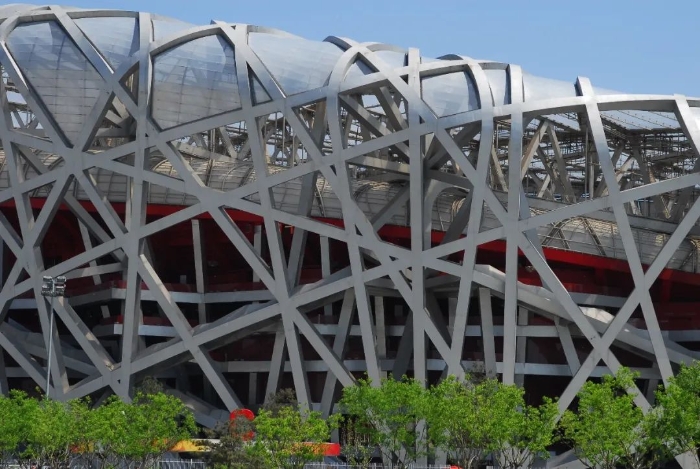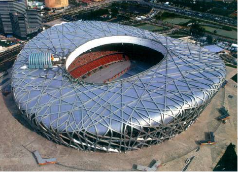 “鳥巢”——中國國家體育場(北京2008年奧運會主體育場),位于北京市成府路南側(cè),奧林匹克公園中心區(qū)南部,是2008年北京第29屆奧運會的主體育場,承擔奧運會開、閉幕式與田徑比賽??偨ㄖ娣e約為258000m2,固定座席可容納8萬人,活動座席可容納1.1萬人(賽后拆除)。建筑工程設(shè)計使用年限為100年,抗震設(shè)防烈度8度,抗震設(shè)防分類乙類,人防等級為6級。