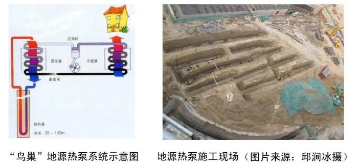 “鳥巢”的暖通空調(diào)系統(tǒng)設(shè)計中,在主導(dǎo)冷熱源系統(tǒng)之上,采用了地埋管式地源熱泵系統(tǒng)作為補充。利用體育場足球場草皮下的土壤資源, 設(shè)計地源熱泵冷熱源系統(tǒng),高效、節(jié)能、環(huán)保。