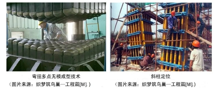 “鳥巢”鋼結(jié)構(gòu)制作量大,由三個廠家共同完成。其中江蘇滬寧和江南造船廠采用的是傳統(tǒng)的造船工藝,浙江精工則采用自身發(fā)明的多點成模機床,通過機床上下兩排點陣狀的可調(diào)節(jié)鋼柱將鋼板鍛壓成曲面。在質(zhì)量標準要求的前提下,傳統(tǒng)工藝和現(xiàn)代發(fā)明機械生產(chǎn)有機結(jié)合促進,形成了有中國特色的生產(chǎn)方式,也體現(xiàn)了中國企業(yè)、工程師和工人的智慧。