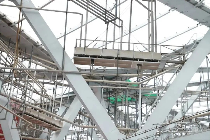 “鳥巢”的工程建造難點眾多,鋼結(jié)構(gòu)工程、混凝土結(jié)構(gòu)工程、膜結(jié)構(gòu)工程、內(nèi)外裝修工程、防水工程、機電設(shè)備工程、施工管控等方面均有各自的特點和難點,大量采用新材料、新技術(shù)、新工藝、新方法,諸如100年耐久性指標、4.2萬噸異型鋼構(gòu)件加工安裝、6萬m2/1.4萬噸大跨度馬鞍型空間鋼結(jié)構(gòu)屋頂臨時支撐體系整體卸載、Q460超強超厚鋼鋼板焊接、4.5萬m2ETFE和5.3萬m2PTFE大面積膜結(jié)構(gòu)安裝等諸多關(guān)鍵施工技術(shù)堪稱世界難題,并且建設(shè)、技術(shù)及驗收均為國家最高標準并與國際相關(guān)高技術(shù)標準接軌。