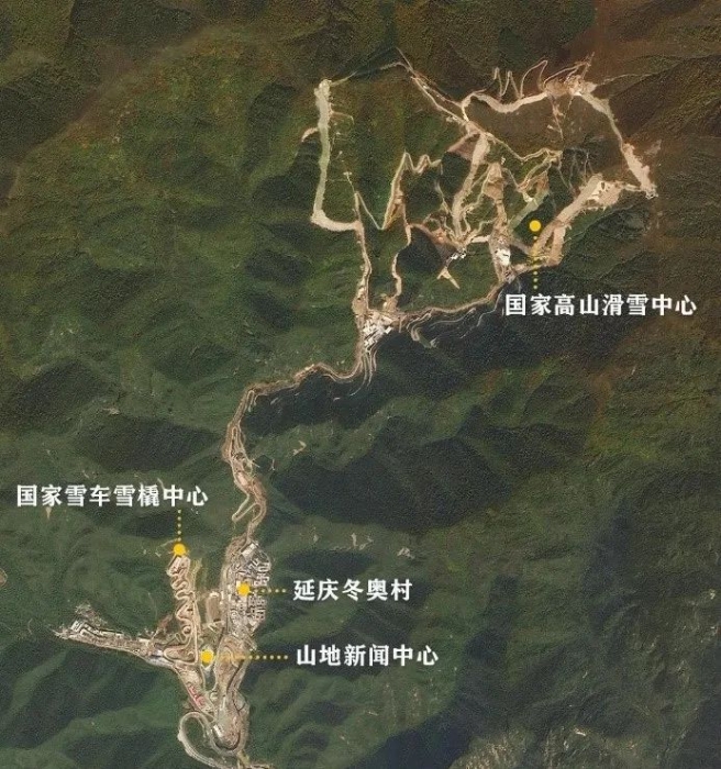 自西南向東北俯瞰國家雪車雪橇中心(孫海霆,攝)