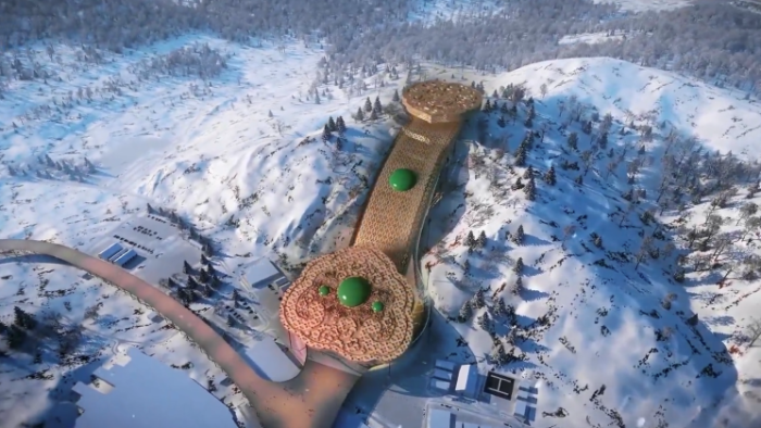 此外,位于山下的看臺(tái)區(qū)也是“雪如意的一大亮點(diǎn),其面積相當(dāng)于一個(gè)標(biāo)準(zhǔn)足球場。