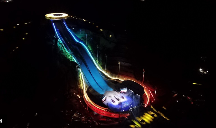 “雪如意”中間的柄身部分是滑道,分為HS140大跳臺(tái)和HS106標(biāo)準(zhǔn)跳臺(tái),140大跳臺(tái)長度110米,落差135米,106標(biāo)準(zhǔn)跳臺(tái)長度106米,落差115米,當(dāng)今世界上體量最大的跳臺(tái)滑雪場館。
