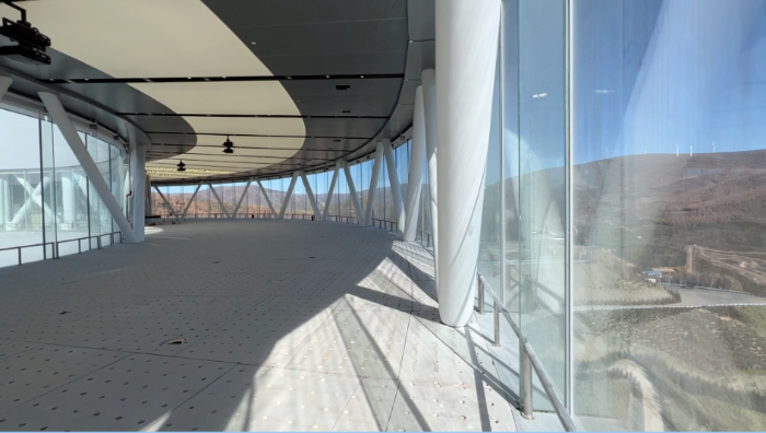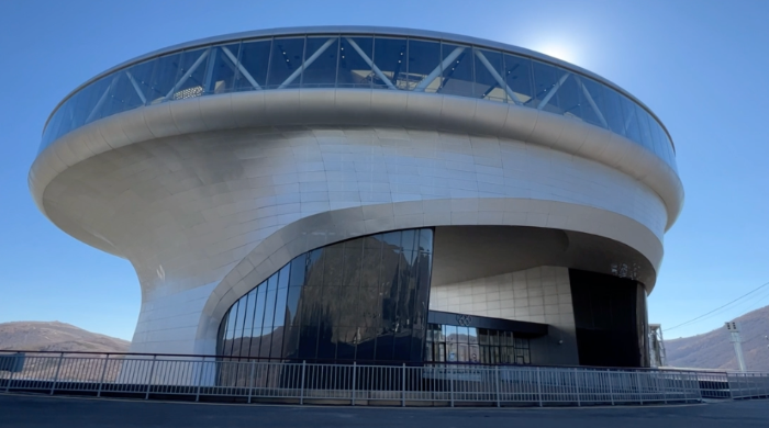 “如意”造型頂部的“大圓環(huán)”就是頂峰俱樂部,是它最明顯的標(biāo)志,也是難度系數(shù)很大、科技含量很高的工程。國外跳臺(tái)滑雪場地一般只有頂部運(yùn)動(dòng)員出發(fā)區(qū),“雪如意”是世界上首個(gè)在頂部出發(fā)區(qū)設(shè)置大型建筑物的跳臺(tái)滑雪場地。