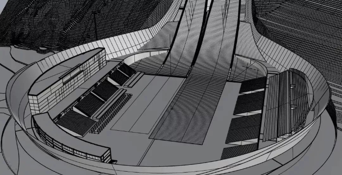 國家跳臺(tái)滑雪中心(National Ski Jumping Centre)位于張家口市崇禮區(qū)古棋路,是我國首座跳臺(tái)滑雪場館,它也是張家口賽區(qū)冬奧會(huì)場館群建設(shè)中工程量最大、技術(shù)難度最高的競賽場館。該場館主體建筑靈感來自于中國傳統(tǒng)吉祥飾物“如意”,從跳臺(tái)環(huán)形頂端,再到剖面線形和底部看臺(tái),與“如意”的S形曲線完美契合,因此被形象地稱作“雪如意”。既體現(xiàn)了體育建筑的動(dòng)感,又凸顯了中國文化元素。
