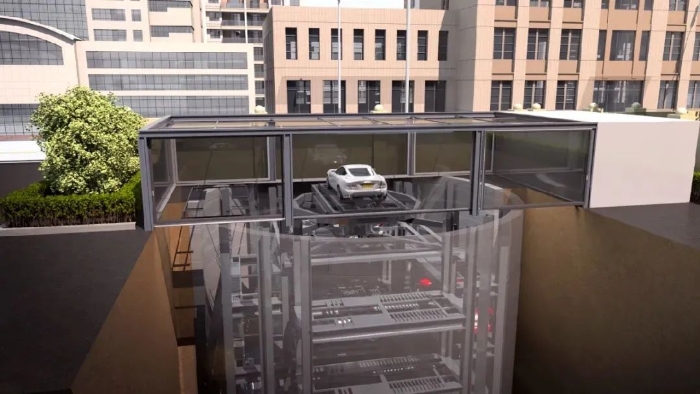 江蘇南京市建鄴區(qū)高層建筑多,地面停車資源較為緊張,為緩解停車難,南京市建鄴區(qū)利用邊角空地,采用垂直豎井掘進(jìn)技術(shù)建成深井停車場。從外觀看,這座停車場就是一幢3層建筑,但建筑下方建設(shè)了兩個68米的停車井,共25層,每層可停放4個車位,機(jī)械升降平臺可360度旋轉(zhuǎn)停在任意層,全程無人操作。