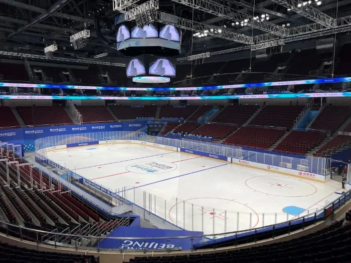 場館還重點對現(xiàn)有照明設施和顯示系統(tǒng)進行了改造,競賽場館的上方安裝了18臺專業(yè)投影儀,以冰面為屏幕,把動感震撼的內(nèi)容,用三維方式展示在冰面上,與先進的88臺光束燈、84臺切割燈和熒光棒相互配合。照明系統(tǒng)各項指標可達到HDTV超高清轉播水平,滿足超高速攝像機回放要求;顯示屏達到高清標準,具備現(xiàn)場同步直播、精彩瞬間捕捉、賽況信息播報、計時記分統(tǒng)計、廣告播出等多項功能,大幅提升了觀賽體驗。