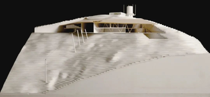出發(fā)區(qū)需要更多地引入關(guān)于奧運的文化主旨去回應(yīng)承辦國家特色的宏大命題。協(xié)調(diào)建筑與自然的關(guān)系就是我們文化的一部分。山頂出發(fā)區(qū)建筑內(nèi)部容納索道站并提供運動員休息空間。根據(jù)索道安全運行的場地水平長度需求,進行了適量土方開挖,形成半覆土建筑,設(shè)計控制建筑體量,最高點不高于小海坨峰頂?shù)暮0胃叨?,表達對自然的敬畏。山頂出發(fā)區(qū)擁有獨特的景觀視野,外立面從外到內(nèi)考慮深遠挑檐、廊道露臺、遮陽景窗等空間化設(shè)計方式,綜合解決了功能、節(jié)能和美觀的多方面需求。建筑以坡屋面回應(yīng)中國傳統(tǒng)建筑的歷史淵源,以樸實的木瓦作為屋面材料體現(xiàn)地域及場所特征,表明本屆冬奧會承辦國家的文化特質(zhì),同時坡屋面造型經(jīng)過了幾何化操作,又賦予其一定的獨特性和當(dāng)代性。頂部設(shè)置的觀山廊和“長卷”景窗提供了可以遠眺國家雪車雪橇中心、延慶冬奧村和山地新聞中心的平遠景致,一幅勝景映現(xiàn)于觀者的眼前,錯綜的賽道擬合于海坨山脈,正如雛燕之形,暨場館“雪飛燕”命名的由來。